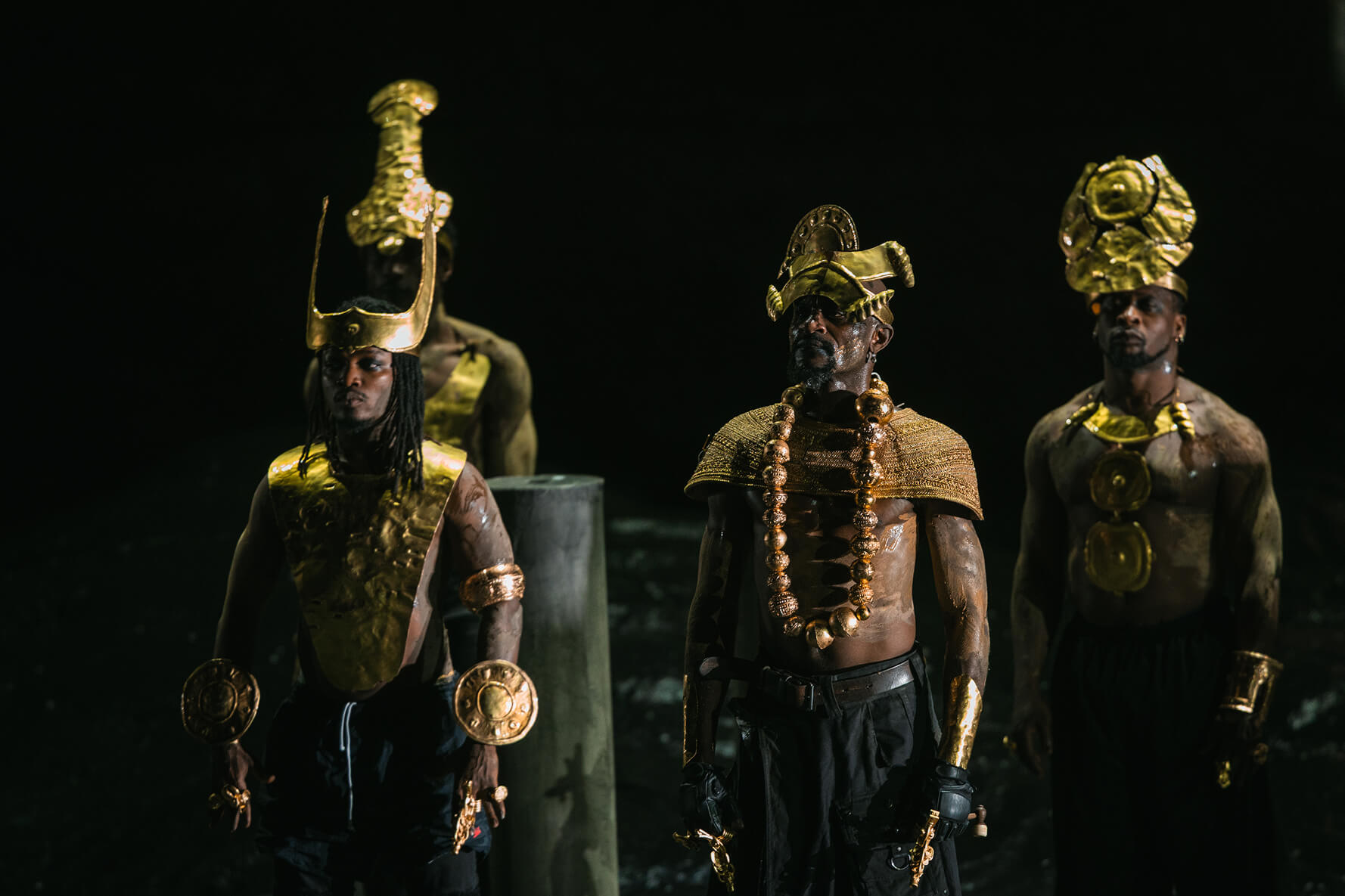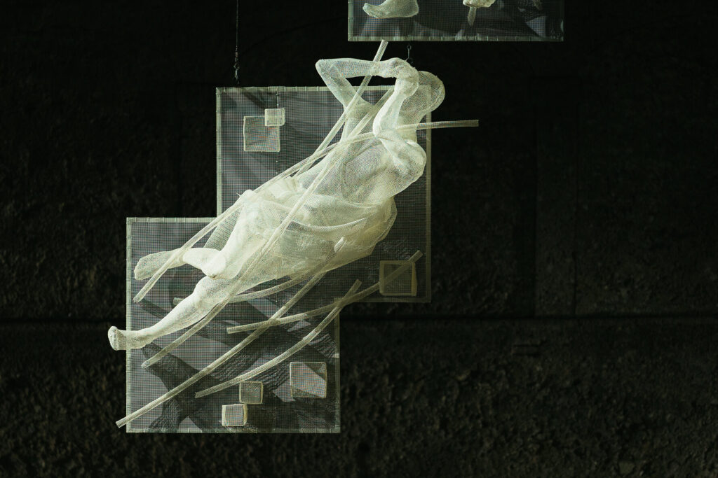 Recycle Group’s sculptures were developed as part of this new world. They resemble both technological remnants and ancient artefacts, shaped by a civilisation that no longer exists in its former form. Rather than functioning as independent artworks, these pieces form part of the scenography, interacting with the performers and their surroundings.